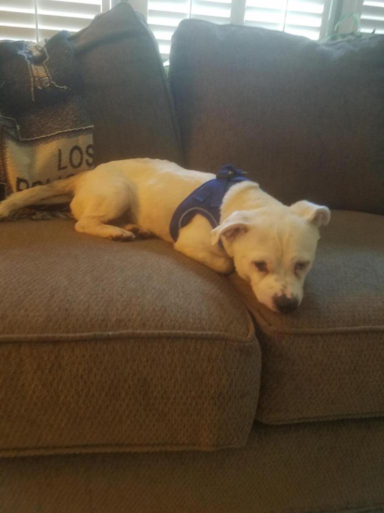 Brooks was a stray until a couple days ago. He was found roaming around a neighborhood. The neighborhood quickly became his village offering support by monitoring his location on their neighborhood Facebook page. They posted flyers and searched for his possible owner online. After a week or more a neighbor was able to safely catch him. Two wonderful ladies came forward to help. They named him Brooks after the neighborhood (how cute!). One of the kind ladies took him to the vet to check for a microchip, have his health assessed, and necessary services administered. As you can guess, he had many obstacles to overcome. He was underweight, needed to be neutered, had confirmed parasites, and the list goes on. Abuse was suspected as he suffered facial trauma resulting in a broken jaw and bruised eyes. The vet did not suspect an animal attacked him, but rather abuse most likely from being hit and/or kicked in the face by a human. It is unknown when the abuse occurred and how long he was suffering. Brooks was estimated to be approximately 2-3 years old when rescued. He quickly found a wonderful and patient human and forever home. he is loved beyond measure!