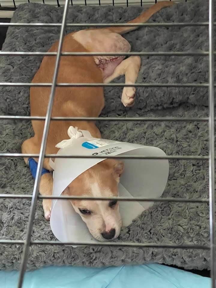 Jessie had her leg amputated. She was discovered with her leg broken so badly that It simply could not be saved. Thankfully, BarkVille Dog Rescue rushed to her side and helped her and so did Meg’s Village. Meg’s Village was established in honor of Meg and for dogs just like Jessie. Love always prevails!