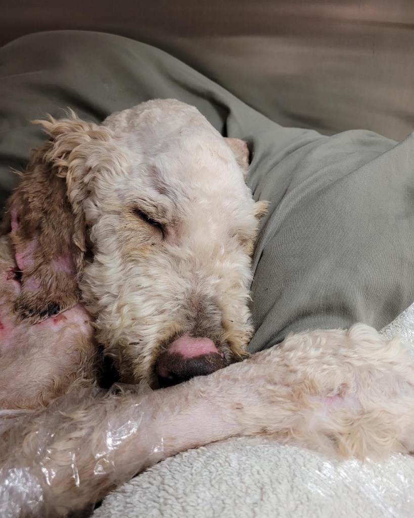 Will…Who is Will you ask? Will was a dog victim of horrific abuse. There is strong evidence that Will was set on fire. Deep breath…Yes, take a moment to try to process that as I did and continue to. Will was found in flames. Luckily, he was found and the fire was put out. A wonderful rescue stepped up to care for Will. He received 24/7 veterinary attention because his injuries were quite critical and extensive. He remained in good spirits by everyone rallying around him at the vet’s office, praying, donating, and those in spirit (Meg). Meg’s Village worked hard behind the scenes to put some things in place so that we were help help fund Will’s vet expenses.